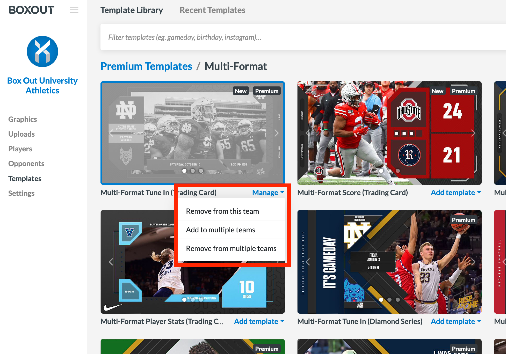 A great feature with Box Out is the ability to create team pages, but adding templates to each team one-by-one can sometimes get time consuming.