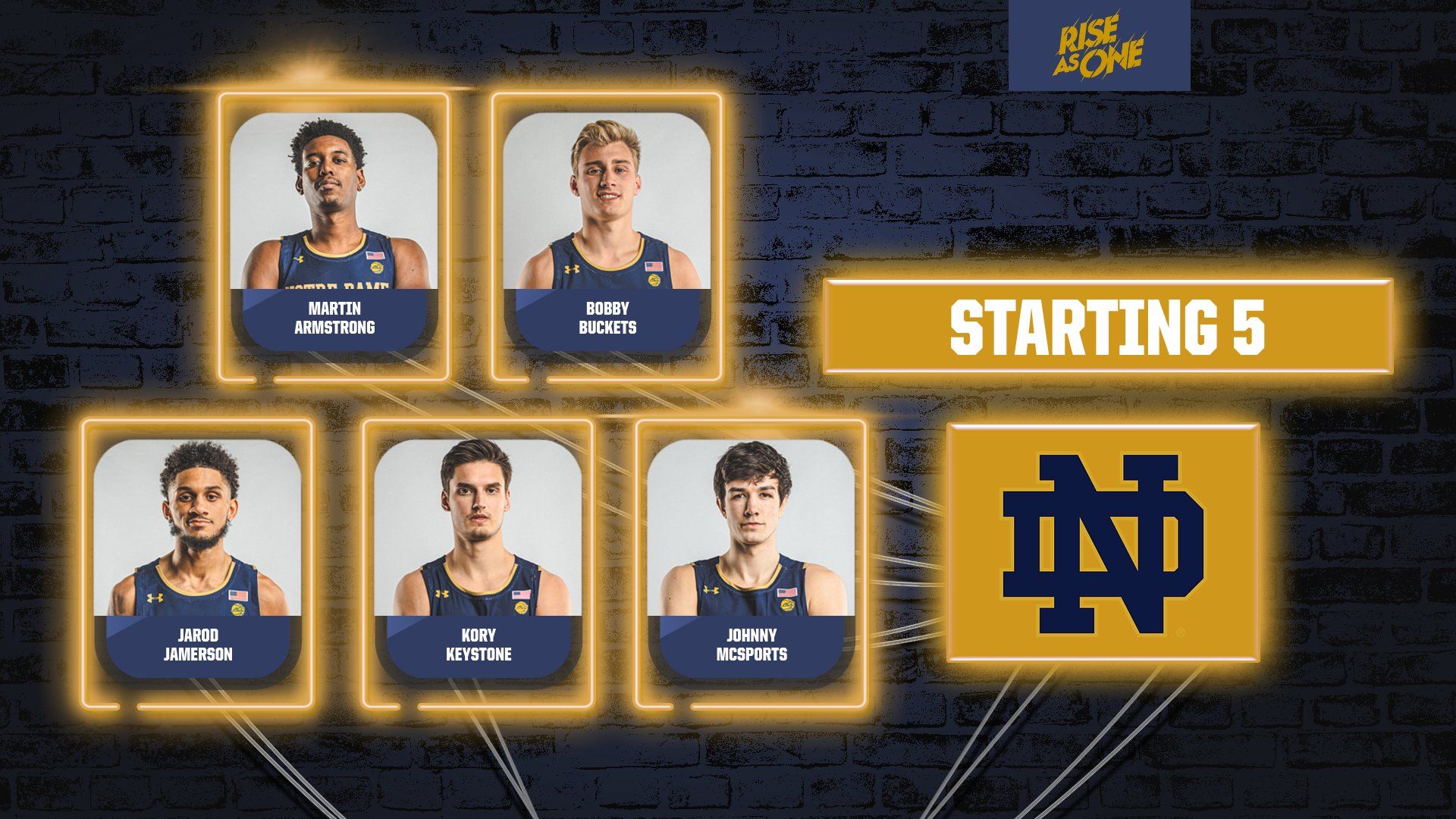 This unique graphic is much more than just a basketball lineup, but is specifically designed to highlight 1-5 student-athletes making it great for pre and post-season accomplishments or multiple individuals who have earned academic honors.