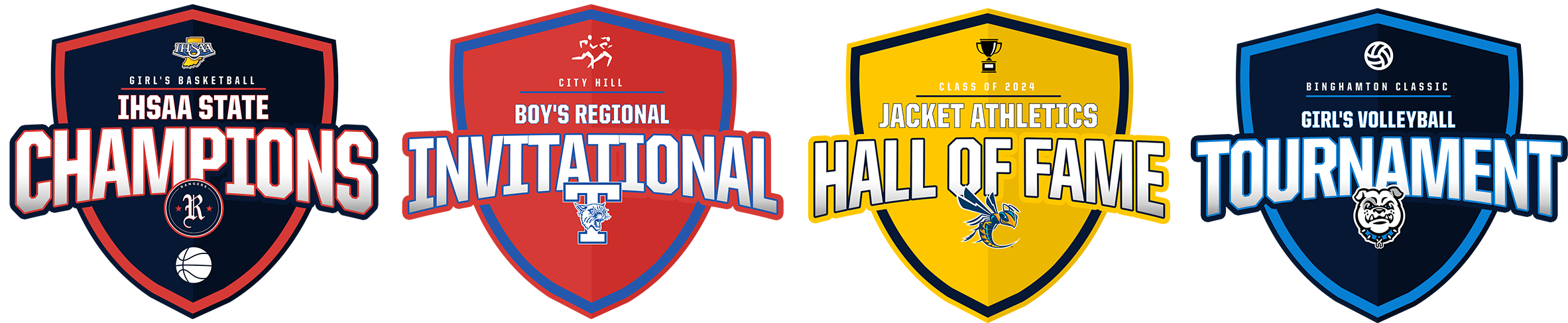 From titles to tournaments you can create your own custom badges. You can also take full advantage of our logo database to search key words like: cross country, golf, tournament, or even your state association to include within your logo.