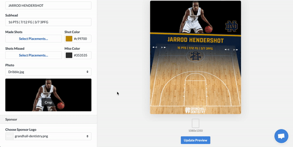 Top it off with a player photo & logo at mid-court and your shot chart is complete!