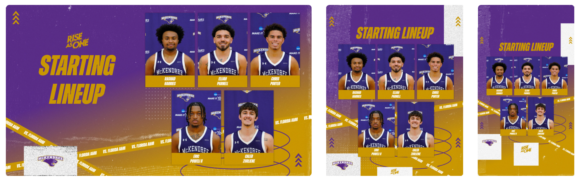 This quick frame template gives you the flexible ability to create a graphic for multiple needs. Utilizing the headline and sub-text you can use it for player highlights, gamedays or breaking news and announcements.