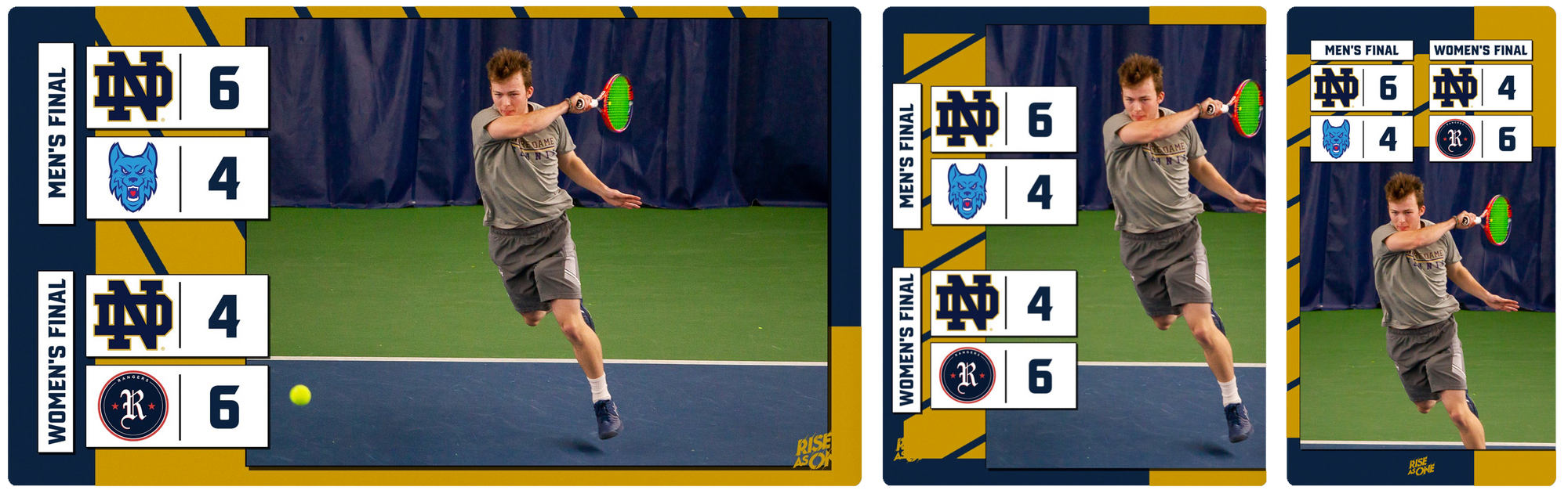 Do you have a baseball/softball double header or a co-ed tennis match? Whatever the event or sport, this graphic gives you the option for two scores of your choice making it great for even sports like swimming, cross country or track & field.
