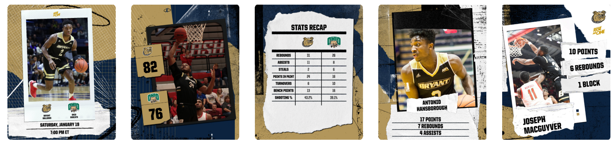 You have the option to choose from five different layouts within each of the five panels to customize what you'd like to recap: Game Info, Game Stats, Score Update and two Player Spotlights.