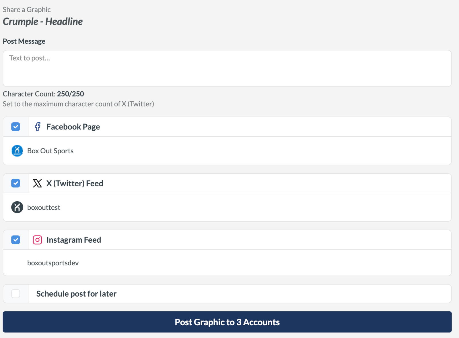Share Across Multiple Platforms: Now you can post your sports graphics to Facebook, Twitter, and Instagram all at once! No more hopping between apps—just one seamless experience.