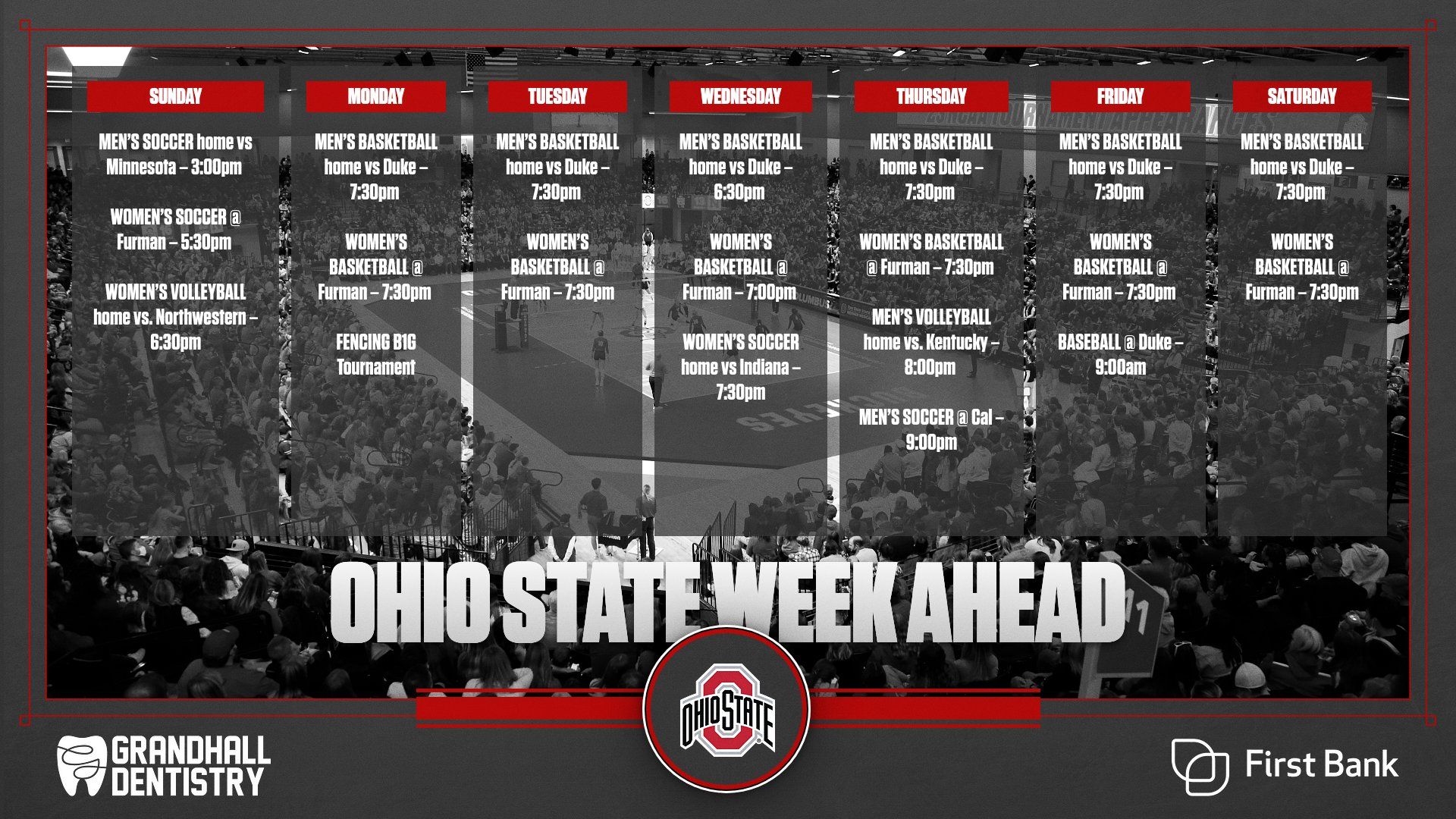 You'll be able to feature every day of the week and include multiple events for each day.
