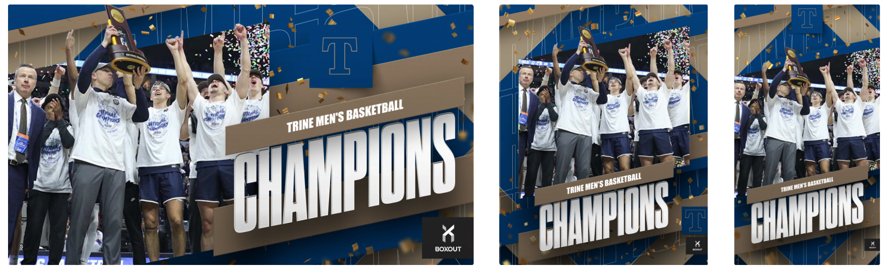 But we made these championship templates flexible. No photo? No problem! If you didn't capture or something simply don't include it and the graphic will automatically update to include an entirely different look.